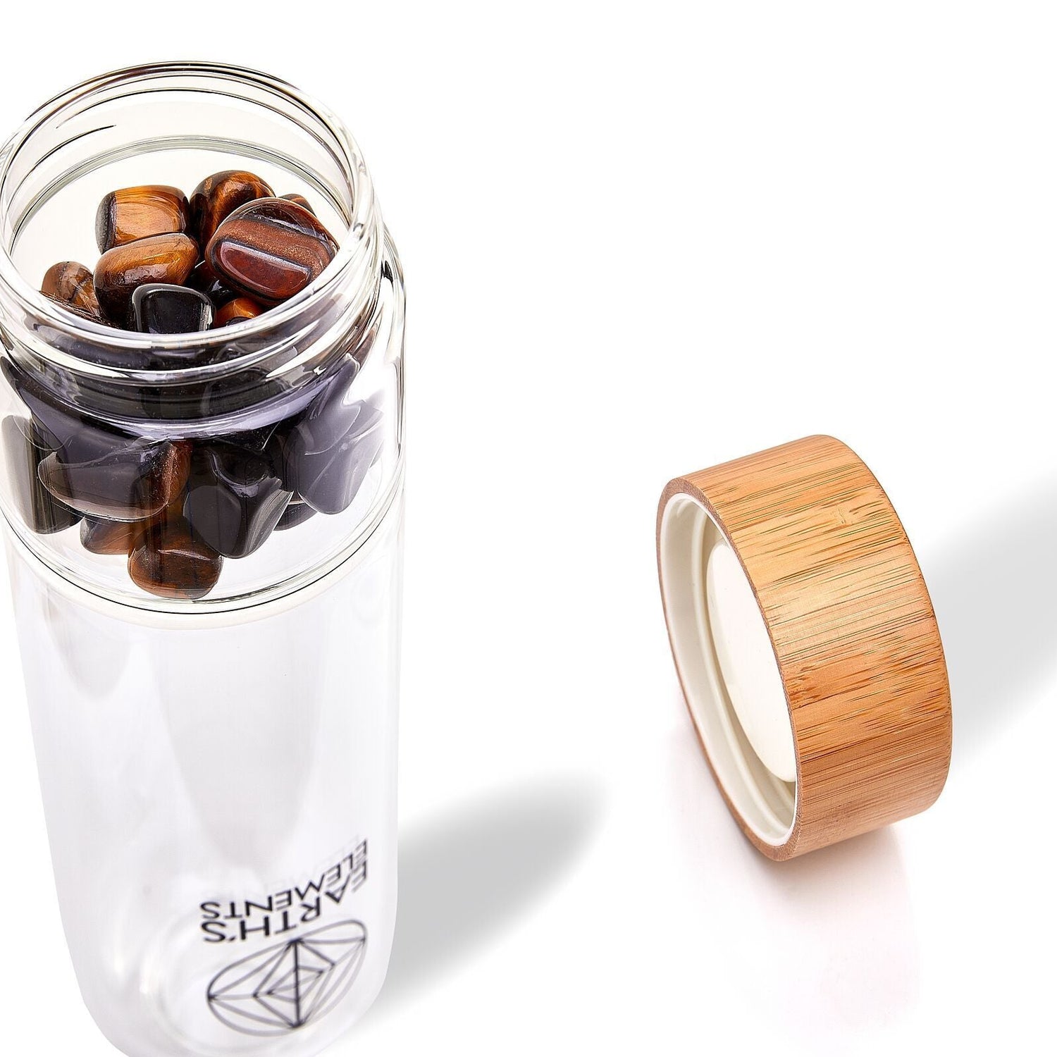 Carry your power with you everywhere. This Divine Protection Crystal Water Bottle features tumbled tiger's eye and black onyx—two stones renowned for sparking courage and grounding your energy. Tiger's eye ignites your inner fire, pushing you to take bold action and embrace your full potential, while black onyx anchors you to the present moment and the earth beneath your feet. Together, they work with your lower chakras to dissolve self-doubt and transform your wildest dreams into tangible reality. Whether you're conquering your to-do list or simply need a reminder that you're capable of anything, this bottle keeps your intention close and your spirit unshakeable. Sip with intention, live with purpose.