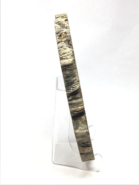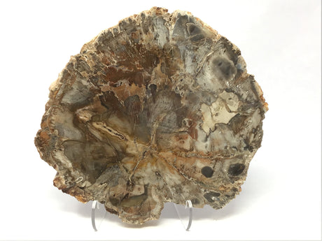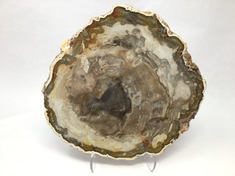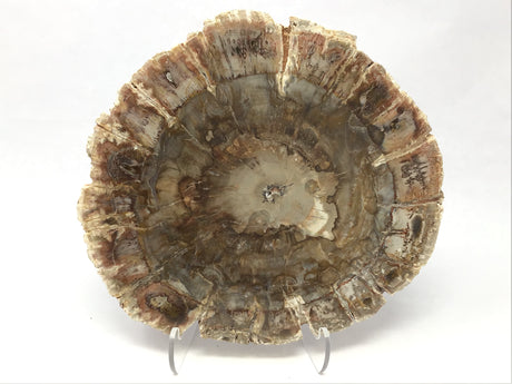 Madagascar Petrified Wood Slice with Natural Bark Edge - Medium on Lucite Easel