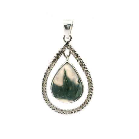 Moss Agate Pear Pendant Danglingin Rope Setting of 925 Sterling Silver