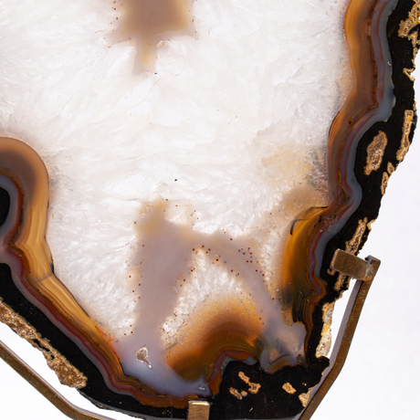 Regular price $8900Unit price /UnavailableVery low stock (1 unit)Agate Slice in Custom Stand - Blue Banded with Druze Center Pocket