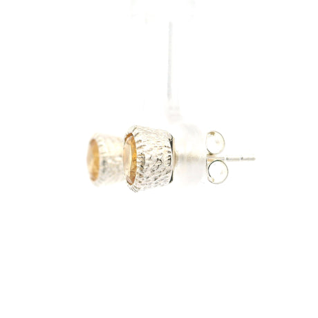 Regular price $10900Unit price /UnavailableVery low stock (1 unit) Faceted Citrine Round Stud Earrings with Fancy Bezel in 925 Sterling Silver