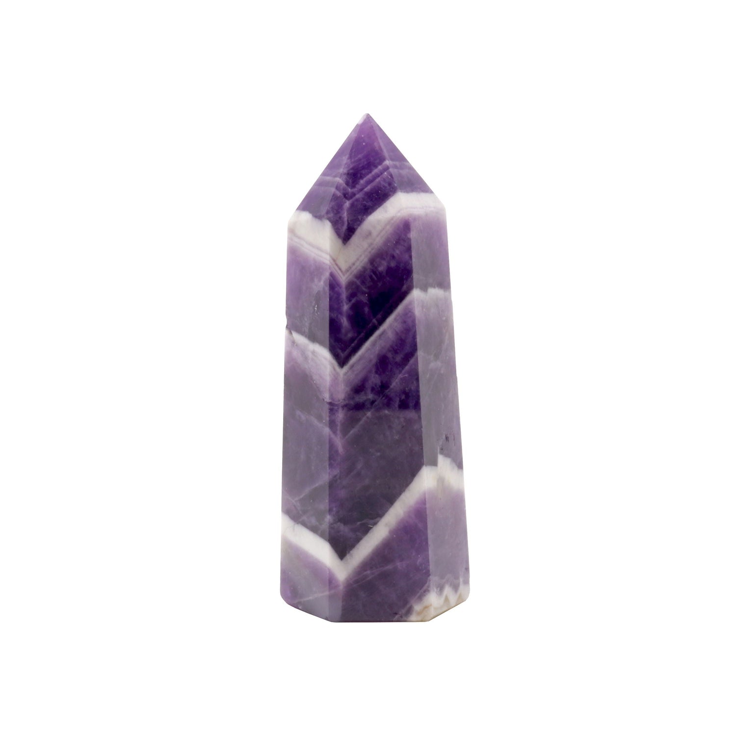 This Chevron Amethyst Point is a stunning mineral that makes a perfect gift. It's great for collections and travel, fitting in any pocket. This powerful piece will last for years.