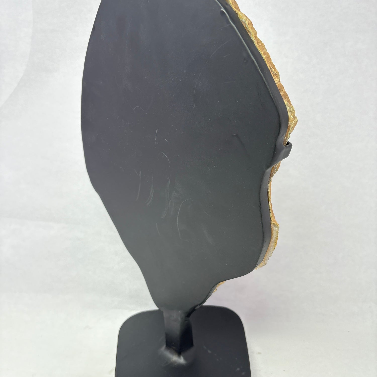 Satisfy your craving for natural beauty with this Chocolate Agate Slice! Featuring rich chocolate-brown banding that surrounds a stunning purple amethyst center, this unique slice creates a delicious color combination that's both soothing and sophisticated. The illuminated table stand brings out every layer and crystal detail, making the amethyst druze sparkle like tiny stars against the warm brown backdrop. Perfect for adding cozy elegance to any space, this piece combines the grounding energy of agate with amethyst's calming properties for a display that's as beneficial as it is beautiful!