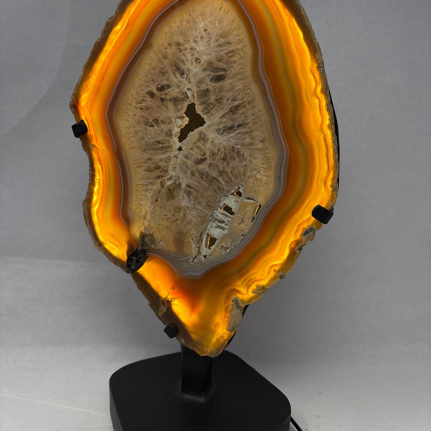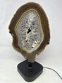 Chocolate Agate Slice with Amethyst Center On Illuminated Table Stand - A is backordered and will ship as soon as it is back in stock.