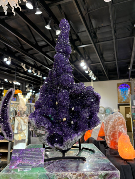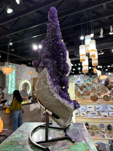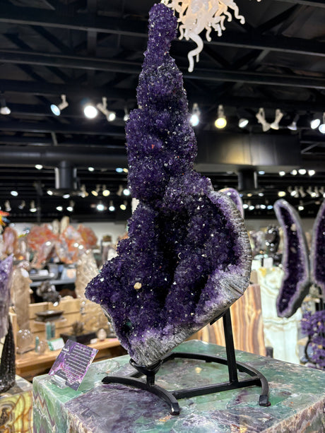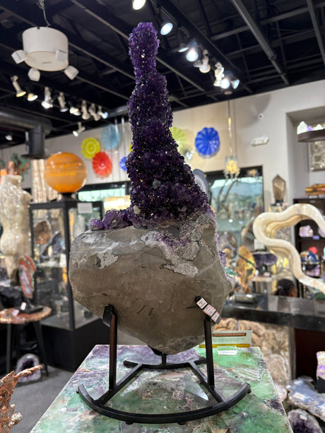 A+ Quality Amethyst Stalactite Geode Specimen in Fitted Stand