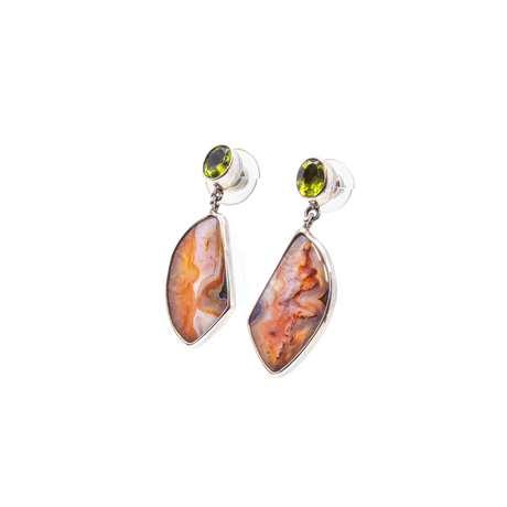 Regular price $1,85000Unit price /UnavailableVery low stock (1 unit)Crazy Lace Agate Earrings On Post With Oval Peridot Stud - Dark Orange & Pastel Purple