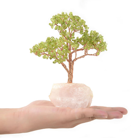 Peridot Copper Wire Beaded Tree of Life on Rose Quartz Base