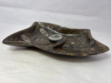 Regular price $29800Unit price /UnavailableVery low stock (1 unit)Triangular Ammonite & Orthoceras Fossil Bowl in Brown Seabed with Ammonite Feature