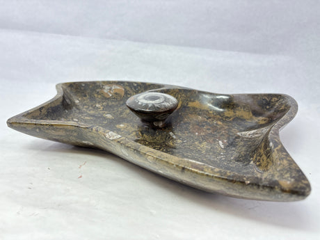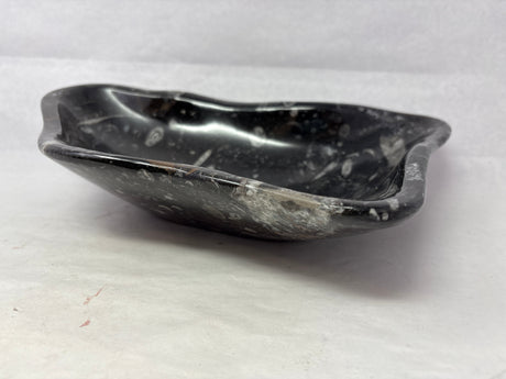 Regular price $29800Unit price /UnavailableVery low stock (1 unit)Orthoceras Fossil Bowl in Black Seabed - Freeform Triangle