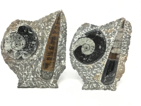 Regular price $18900Unit price /UnavailableVery low stock (1 unit)Ammonite and Orthoceras Fossil Bookends in Black Seabed - Trapezoid