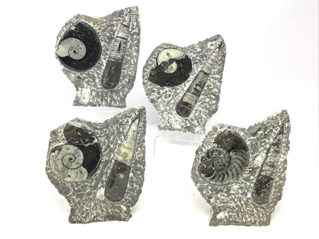 Orthoceras and Ammonite Fossil Plaque with Base from Morocco - Small