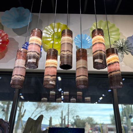 Regular price $11900Unit price /UnavailableIn stockPink Onyx Pendant Light with Black Line & Hardware - Set of 7 with Custom Canopy