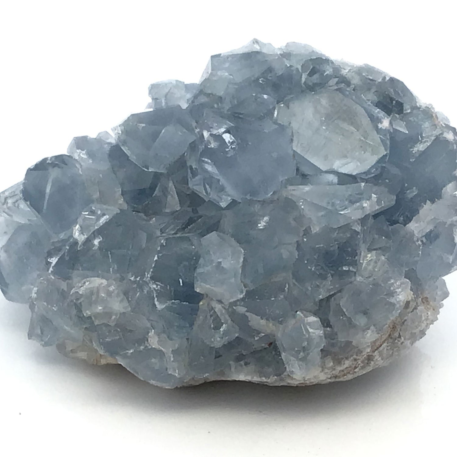 Discover the serene beauty of this exceptional celestine crystal specimen sourced directly from Madagascar's renowned mineral deposits. Featuring delicate sky-blue crystals with natural geometric formations, this piece showcases the mineral's characteristic translucency and subtle striations. Displayed on a custom lucite stand that elevates the specimen for optimal display, it's an ideal centerpiece for collectors, mineral enthusiasts, and those seeking a sophisticated natural accent. Each specimen is unique, with variations in color intensity and crystal structure that highlight nature's artistry. Perfect for curated collections, office displays, or as a meaningful gift for the discerning collector.