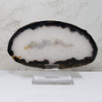 Agate Druze Slice on Screw Stand - Thick Black & Blue Exterior Layer with Quartz and Ash Gray Agate Center - Double-Sided Polish
