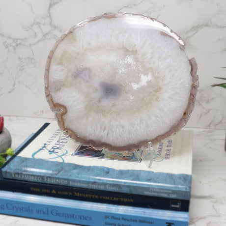 Agate Slice with Double-Sided Polished on Lucite Easel