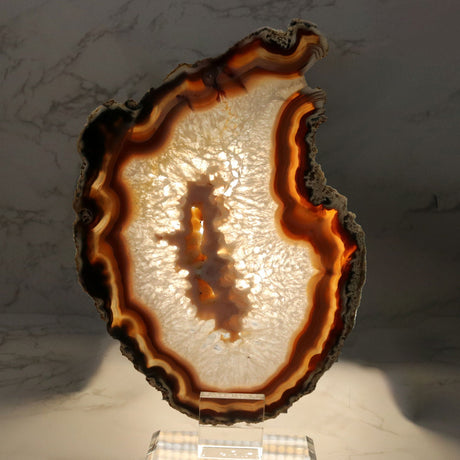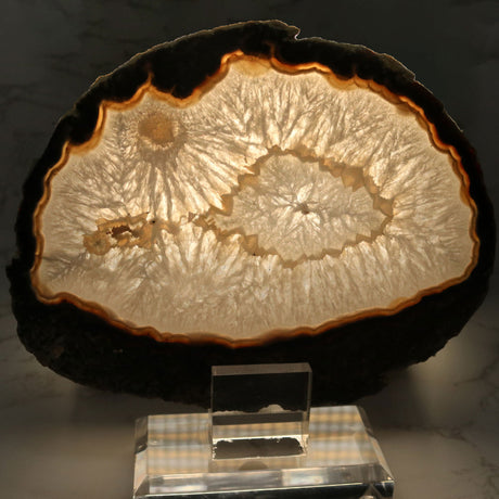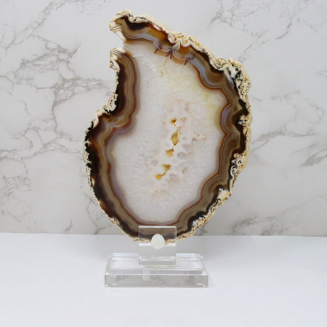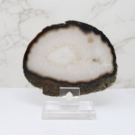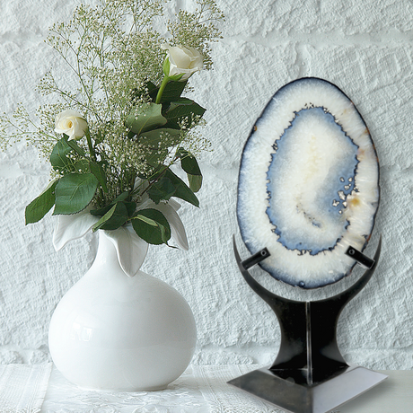 Regular price $8900Unit price /UnavailableVery low stock (1 unit)Agate Slice with Quartz Center in Custom Patina on Post Stand