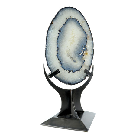 Agate Slice with Dark Blue Bands & Natural Egg Shape - Double-Sided Polish in Custom Crescent Stand