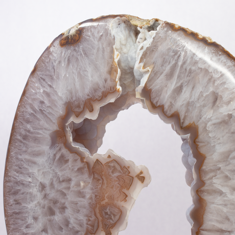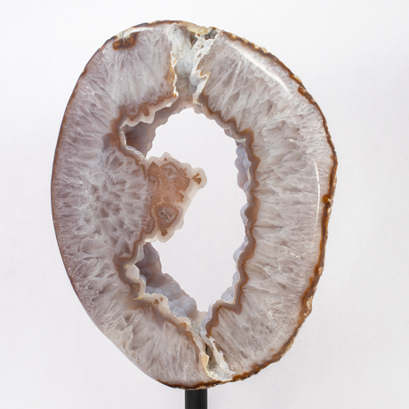 Regular price $8900Unit price /UnavailableVery low stock (1 unit)Agate Slice on Screw Stand - Flame Shape with Carnelian Exterior Band & Quartz with Off-White Center