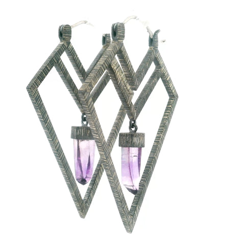 Amethyst Point on Oxidized 925 Sterling Silver Hexagon Lantern Bezel Set with Open Bail - Everest