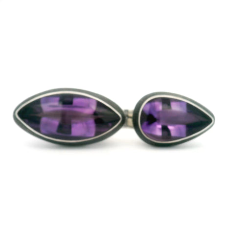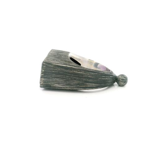 Faceted Amethyst Ring on Ball Oxidized 925 Sterling Silver Band Design