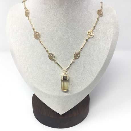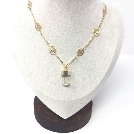 Single Point with Lantern Bezel & Plated Mini Tree of Life Chain - Sacred Geometry