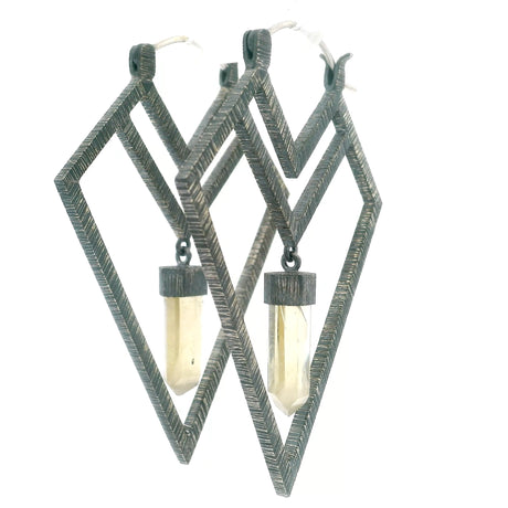 Unpolished Quartz Crystal Delving Arrow Hoop Earrings