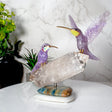This stunning Amethyst Hummingbird Pair on Quartz Crystal Cluster Base is the perfect addition to any nature-inspired home. Made from high-quality amethyst and quartz, this carving features two graceful hummingbirds perched on a sparkling crystal cluster base. It's a great way to bring a touch of the outdoors inside and makes a thoughtful gift for nature lovers.