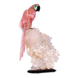Introducing the exquisite Rose Quartz Macaw, a unique and eye-catching piece that's perfect for any room or office. Hand-carved and polished with intricate details, this stunning Macaw features vibrant Amazonite heart-shaped cheek accents, adding a touch of color and vibrancy. The Macaw sits atop a beautiful Quartz cluster and a solid black base. With its natural shaping, this one-of-a-kind piece is sure to be enjoyed and cherished for years to come. A must-have for anyone looking to add a touch of elegance and beauty to their space.