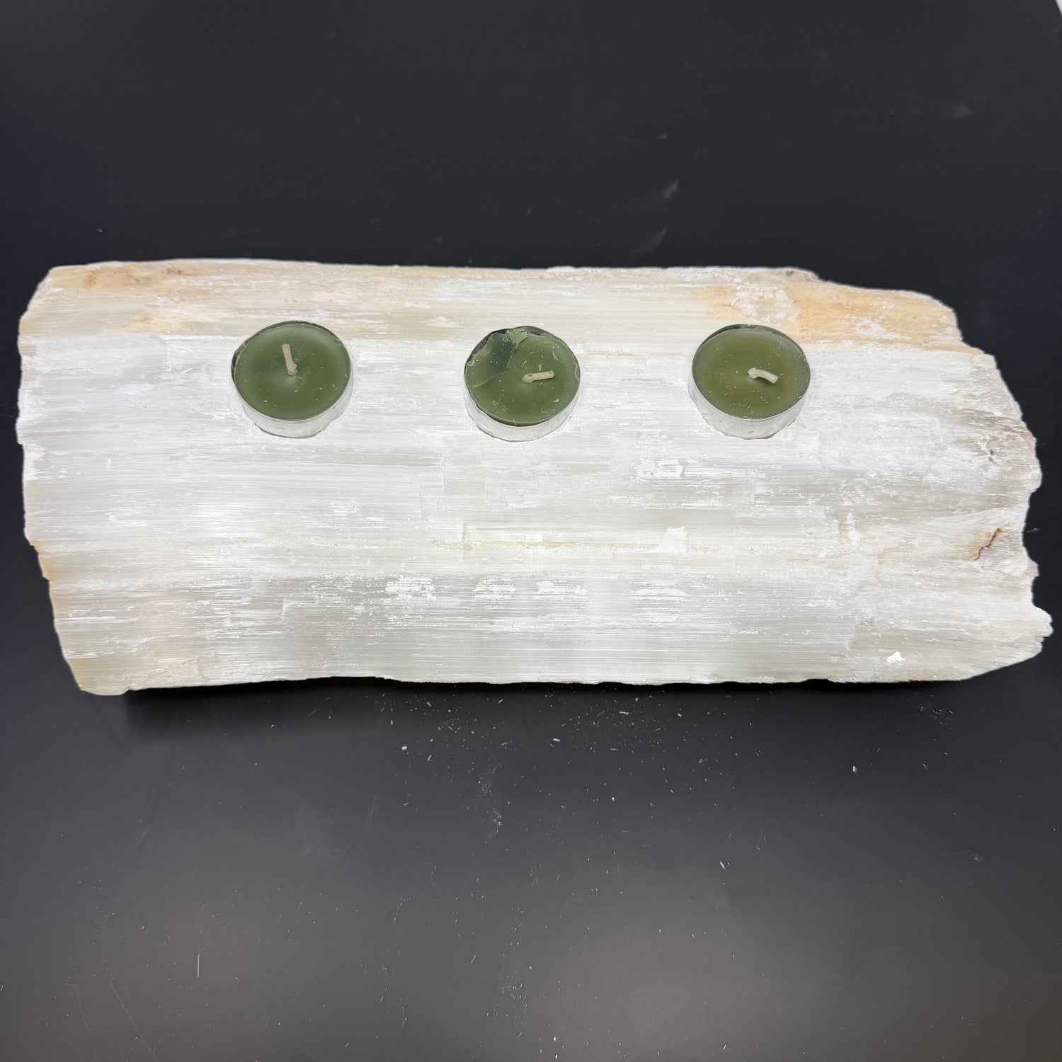 Selenite Log 3 Tealight Candle Holder - Medium