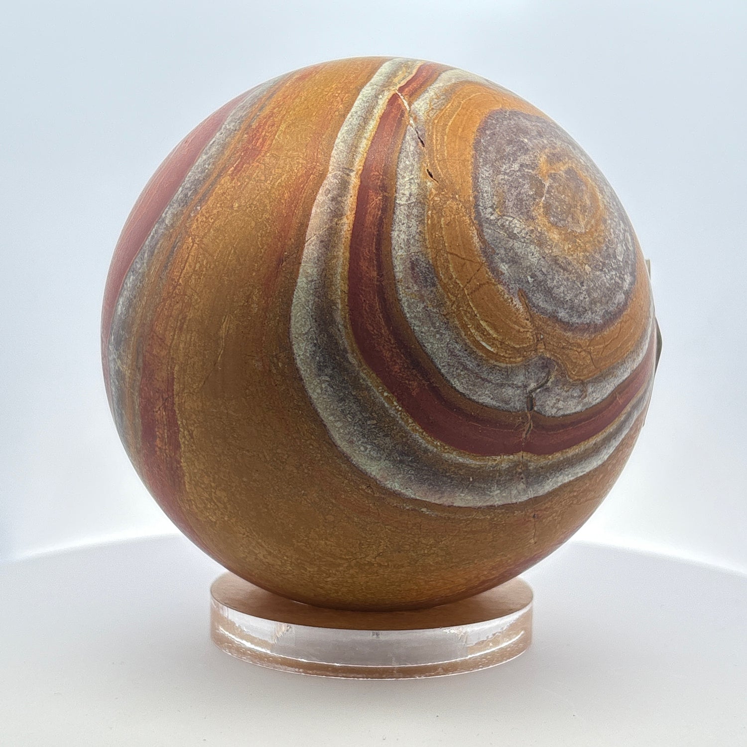 Discover the mesmerizing beauty of this Wonderstone Sphere, a captivating 4.25" natural wonder that brings earthy elegance to any space. Each sphere showcases the unique patterns and warm, earthy tones that make wonderstone a collector's favorite, with no two pieces exactly alike. Perched gracefully on a sleek lucite stand, this display piece becomes an instant conversation starter—perfect for your desk, shelf, or meditation space. Whether you're a crystal enthusiast, a nature lover, or simply someone who appreciates geological artistry, this stunning sphere invites you to pause and marvel at the incredible formations nature creates. Let this little earthen treasure remind you that the most beautiful things often come from deep within.