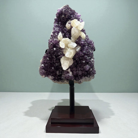 Regular price $29,50000Unit price /UnavailableVery low stock (1 unit)Amethyst Plaque With Sharp Calcite-Cluster Center On Stand