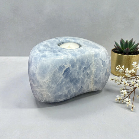Blue Calcite Freeform Candle Holder - Single Glass Tealight