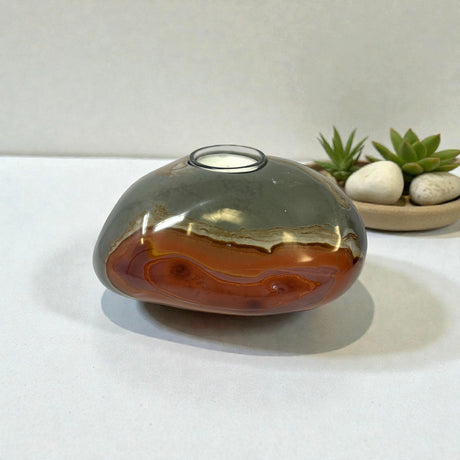 Polychrome Jasper Freeform Candle Holder - Single Glass Tealight - Low