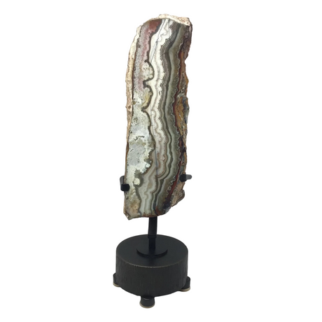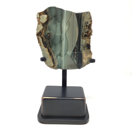 Vertical Crazy Lace Agate End Cut Specimen Set in Rotating Round Base