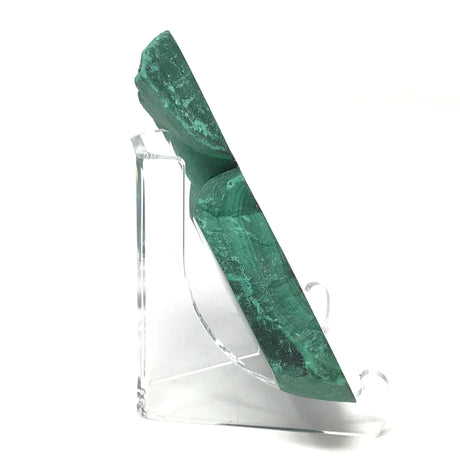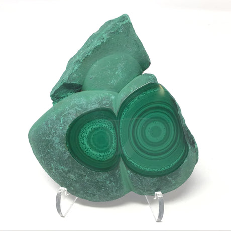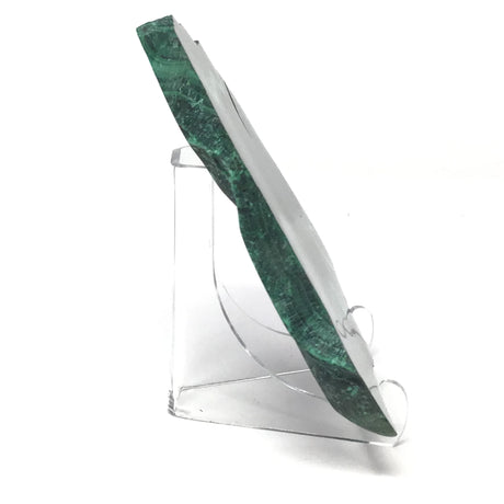 Malachite Botryoidal Slice with Rugged Druze Edges on Lucite Stand
