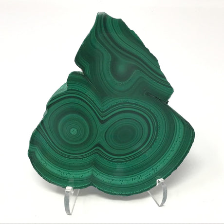 Malachite Slice with Striking Botryoidal Patterns on Lucite Stand
