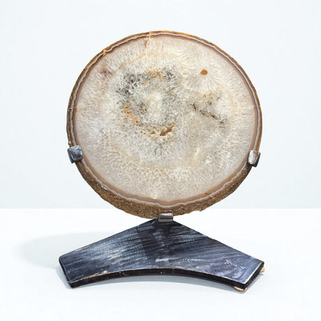 Regular price $8,45000Unit price /UnavailableVery low stock (1 unit)Agate Slice In Custom Stand With Brown Edge & Druze Pocket