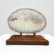 Agate Slice with Pink Tone Druze Vugs on Custom Stand -2 Step Copper Patina