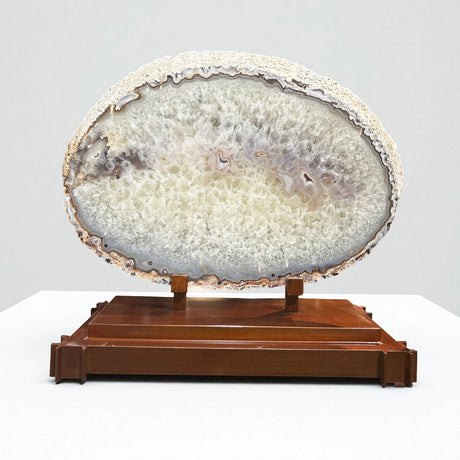 Agate Slice in Custom Stand - Blue Banded with Druze Center Pocket