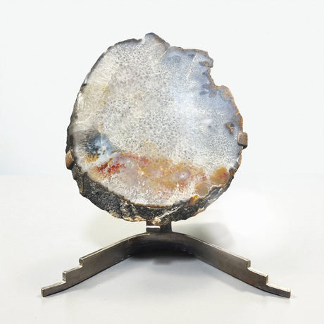 Agate Slice In Custom Stand With Red & Gold & Blue Inclusions At Botttom