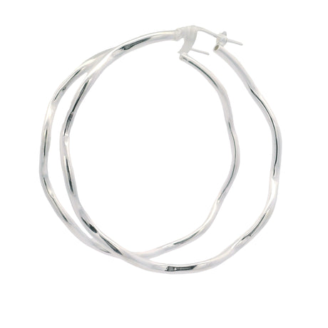 Sterling Silver Hoop Earrings - Wave with Click Top