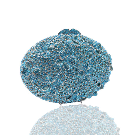 Regular price $77500Unit price /UnavailableVery low stock (1 unit)Sky Blue Bow Oval Crystal Purse with Chain