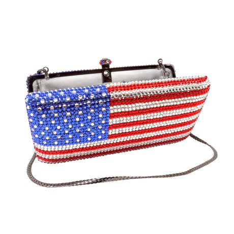 Regular price $77500Unit price /UnavailableVery low stock (1 unit)American Flag Crystal Jewel Purse with Chain