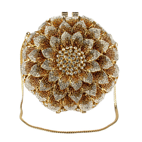 Sunflower Crystal Purse - Gold & Clear with Chain