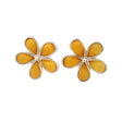 Butterscotch Baltic Amber Flower Stud Earrings - Pear Shape Stones Bezel Set in 925 Sterling Silver