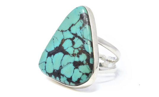 Kingman Az Turquoise Popcorn Inlay Ring - Oval Sharp Sz8.5
