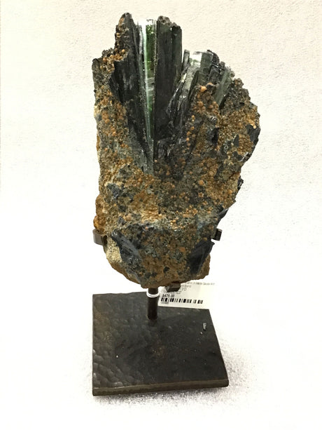 Vivianite Crystal Cluster In Matrix Geode With Orbs On Custom Stand