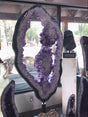 Introducing our exquisite Amethyst Ring on a Custom Metal Spinning Stand—a captivating fusion of natural beauty and refined craftsmanship. This unique piece showcases a stunning amethyst geode in the shape of ring, elegantly displayed on a bespoke, revolving steel stand. Ideal for collectors and enthusiasts, this specimen offers a dynamic display that allows you to appreciate the intricate natural formations and vibrant purple hues of the amethyst from every angle.