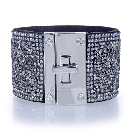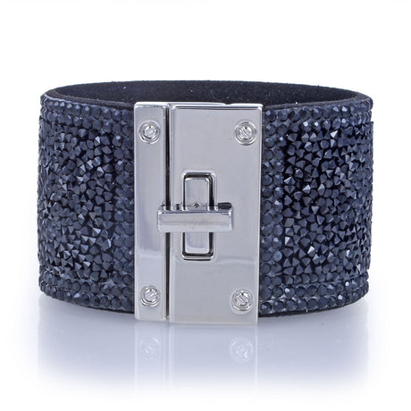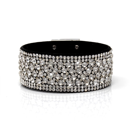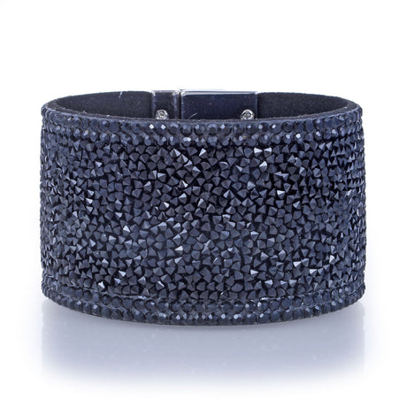 Wide Crystal Wrap Bracelet - Black with Magnetic Clasp