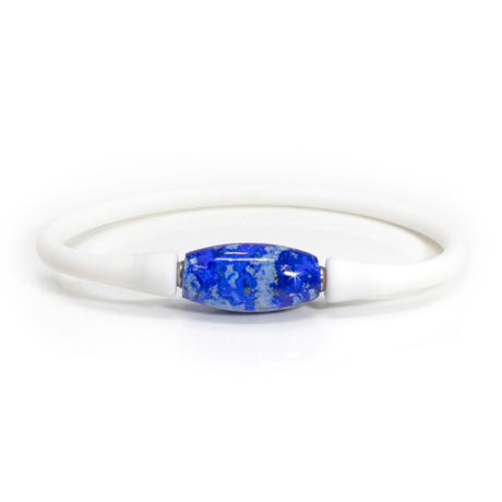 Regular price $1600Unit price /UnavailableVery low stock (2 units)Lapis Lazuli Bangle Bracelet - Barrel Bead Set on White Silicone Band